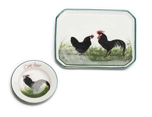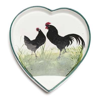 'BLACK COCKEREL & HEN' HEART-SHAPED TRAY, CIRCA 1900