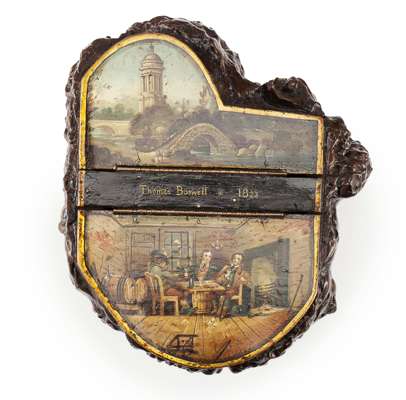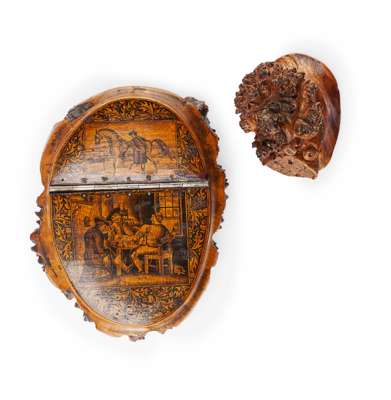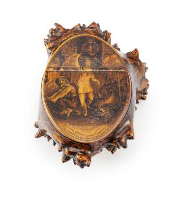 A SCOTTISH BURR-WOOD AND PENWORK SNUFF MULL