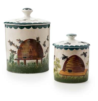 TWO 'BEES & HIVE' HONEY POTS & COVERS, CIRCA 1900