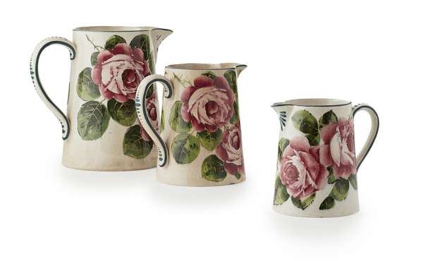 THREE 'CABBAGE ROSES' GRADUATED MILK JUGS, EARLY 20TH CENTURY