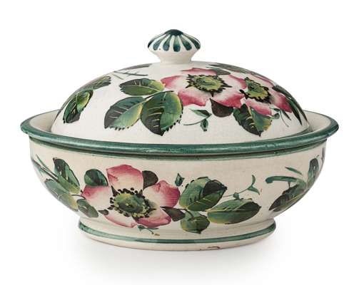 A 'DOG ROSES' SOAP DISH, COVER & LINER, EARLY 20TH CENTURY