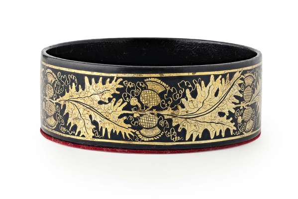 Japanned and decorated with a gilt frieze of flowering thistles (2)