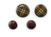 circular in unmarked tartan with black backs, 2.4cm diameter; together with a PAIR OF RED LEATHER BUTTONS, 1.5cm diameter (4)