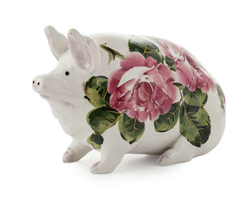 A SMALL 'CABBAGE ROSES' PIG FIGURE, CIRCA 1900