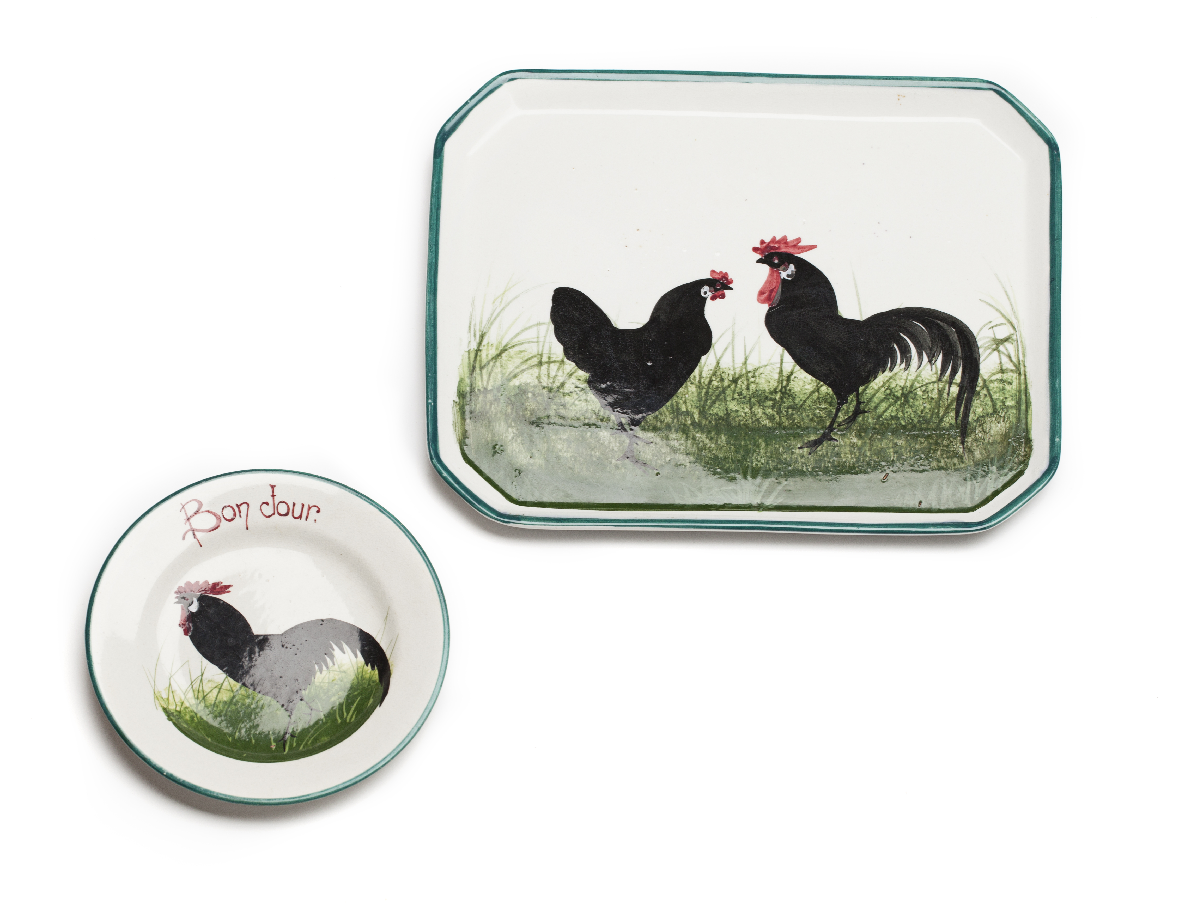 'BLACK COCKEREL & HEN' COMB TRAY, CIRCA 1900