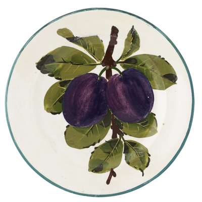 'STRAWBERRIES', impressed mark WEMYSS, printed retailer's mark; 'BRAMBLES', impressed mark WEMYSS, printed retailer's mark; 'RASPBERRIES', painted and impressed marks WEMYSS, painted retailer's mark; 'PLUMS', decorated by Joe Nekola, painted mark WEMYSS; 'APPLES', decorated by Joe Nekola, painted mark WEMYSS; 'REDCURRANTS', impressed mark WEMYSS WARE/ R.H.&S.; 'ORANGES', painted and impressed mark WEMYSS, painted retailer's mark (7)