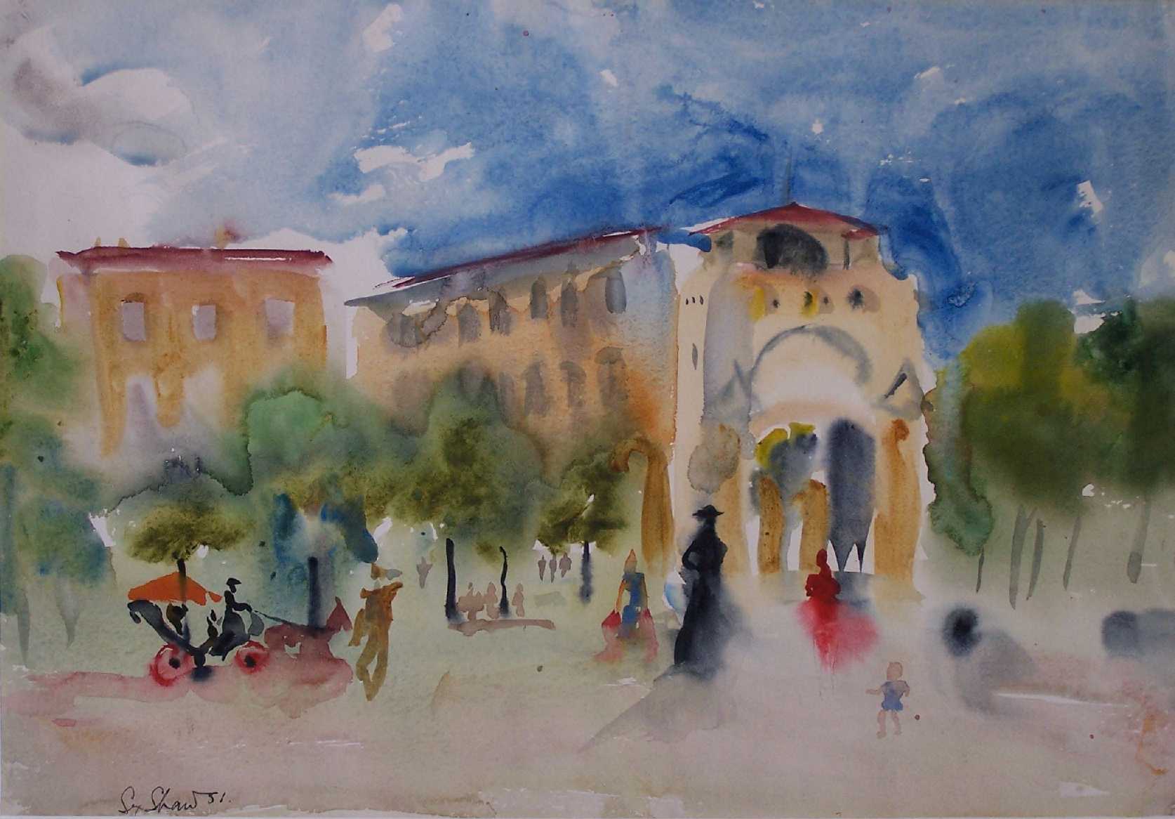 Signed and dated '51, watercolour