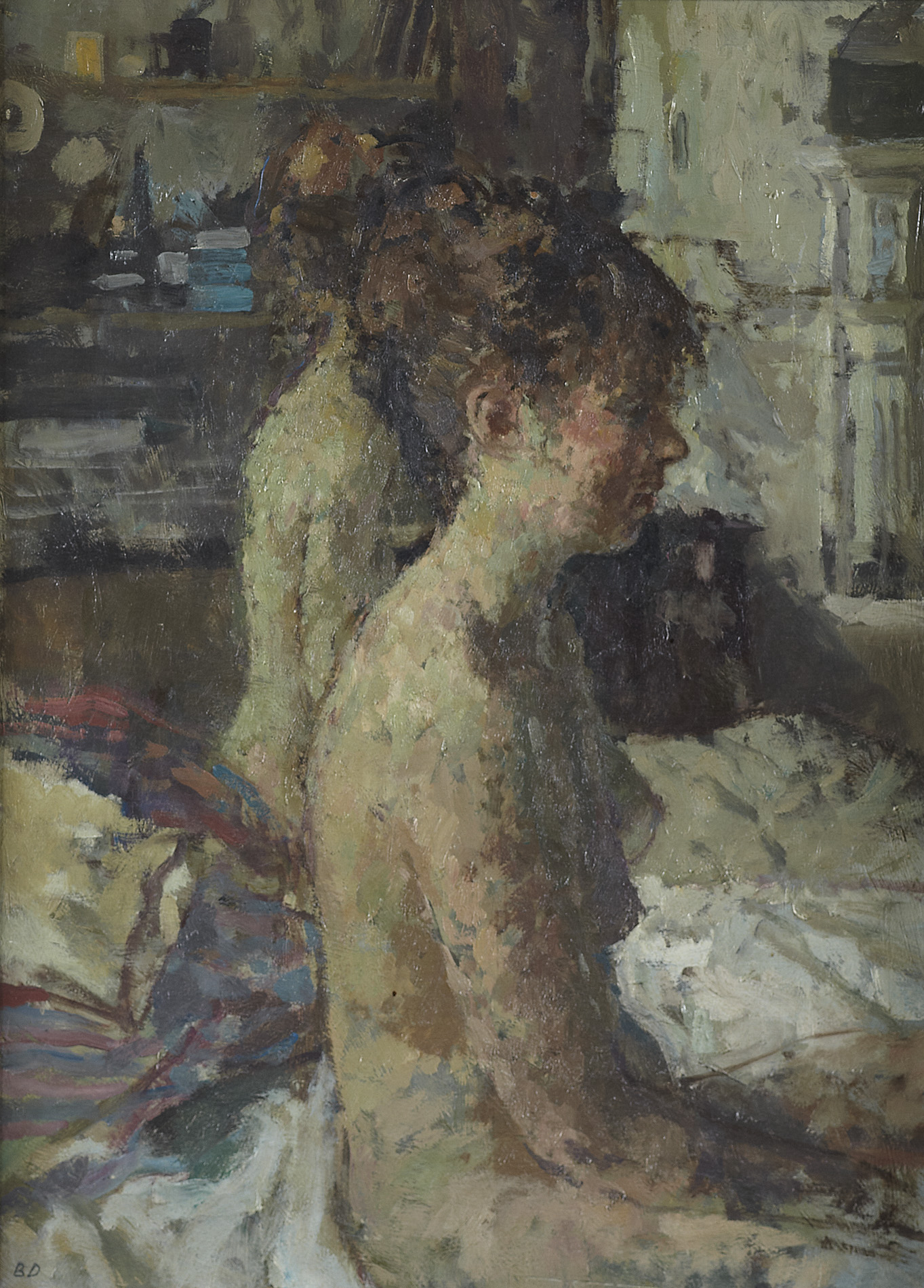 Born in 1920, Bernard Dunstan is currently the longest serving Royal Academician, having been elected in 1959. Married to fellow artist and Royal Academician, Diana Armfield (he begins each day with a sketch of her), he is also a respected author. A proponent of figurative art, in his choice of masterfully executed figure studies and interior scenes, one sees the influence of Walter Sickert, and his work has been lauded as 'quintessentially English'. His paintings are included in the National Portrait Gallery, the Royal Collection, and the Arts Council collection.