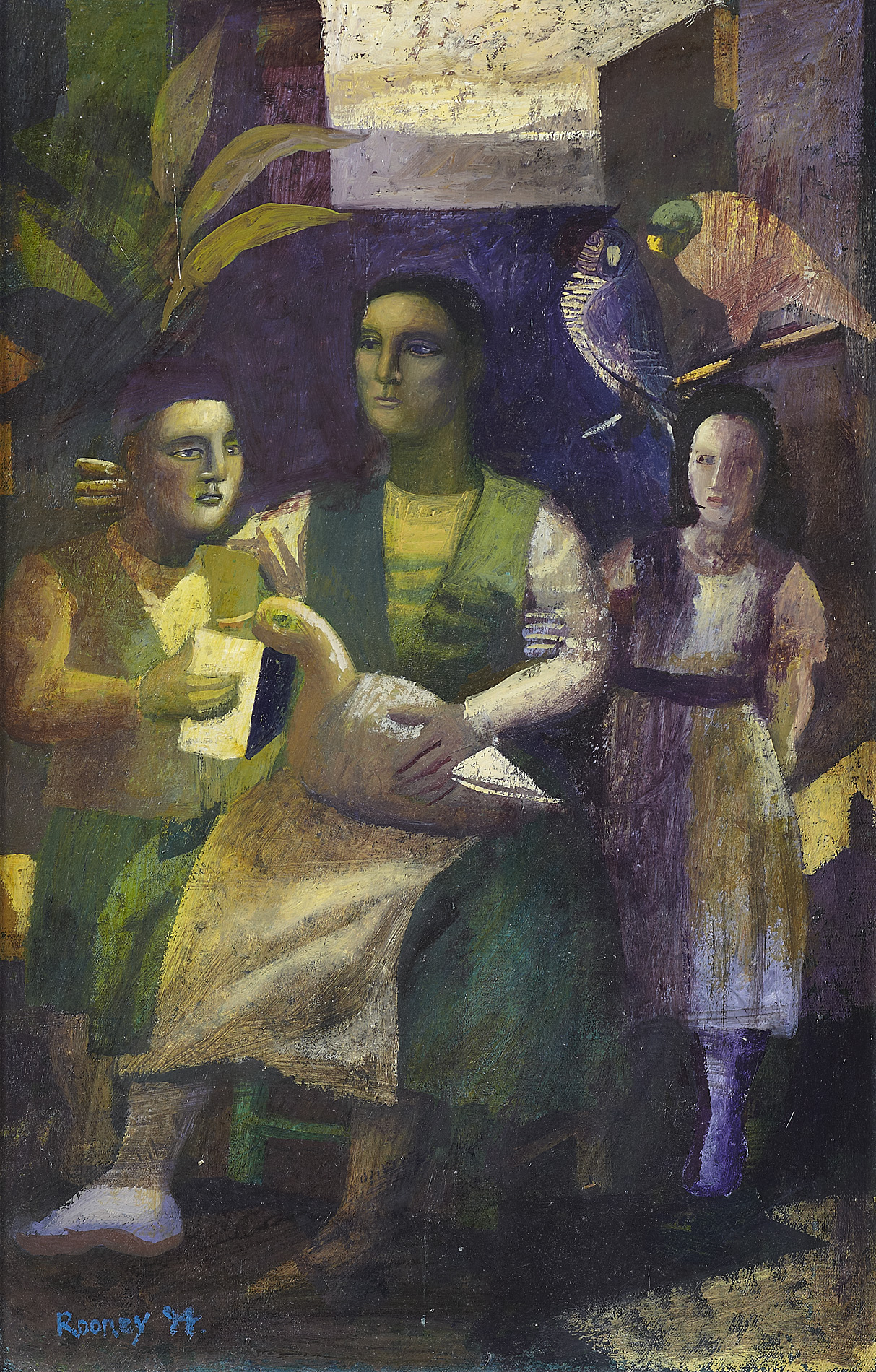 Born in Surrey in 1944, Rooney studied at the Royal College of Art from 1964 to 1967, before winning a scholarship to study at the British School in Rome. From 1965 he has exhibited in numerous galleries within London and Europe, and his work is included in public collections,