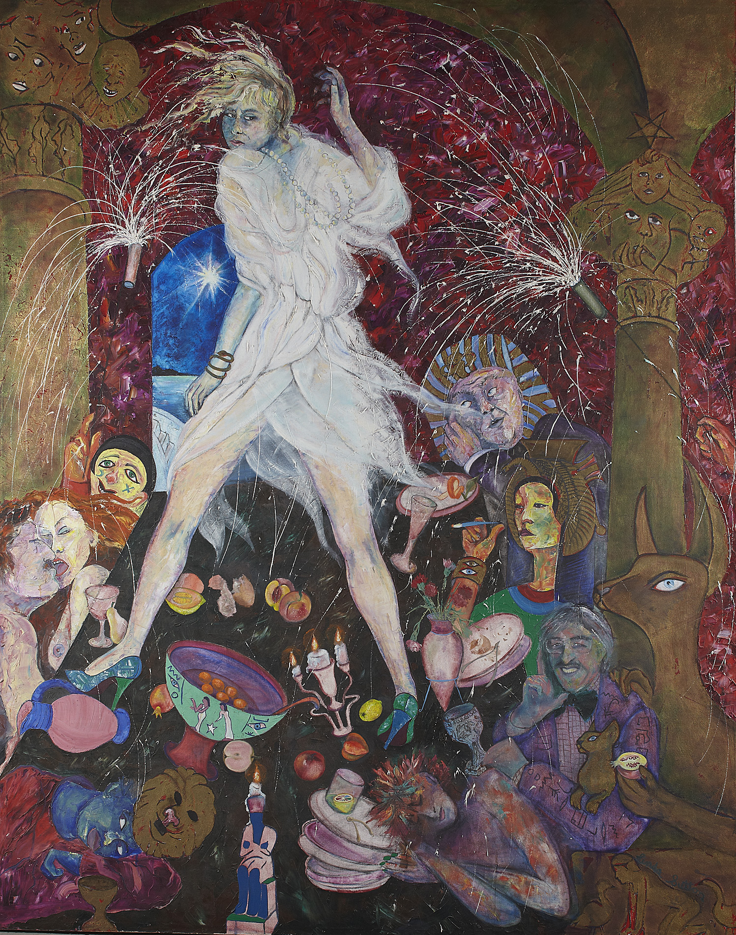 Often focusing on familiar and archetypal narratives in a striking and individual style, Linda Sutton's jewel-hued paintings demonstrate her fascination with fairytale, and it is not surprising to learn that her love of painting first grew out of a childhood experience of convalescence. Confined to bed, with her imagination free to roam, Sutton fuelled her nascent creative urge with eading, and a trip to the Tate shortly after her