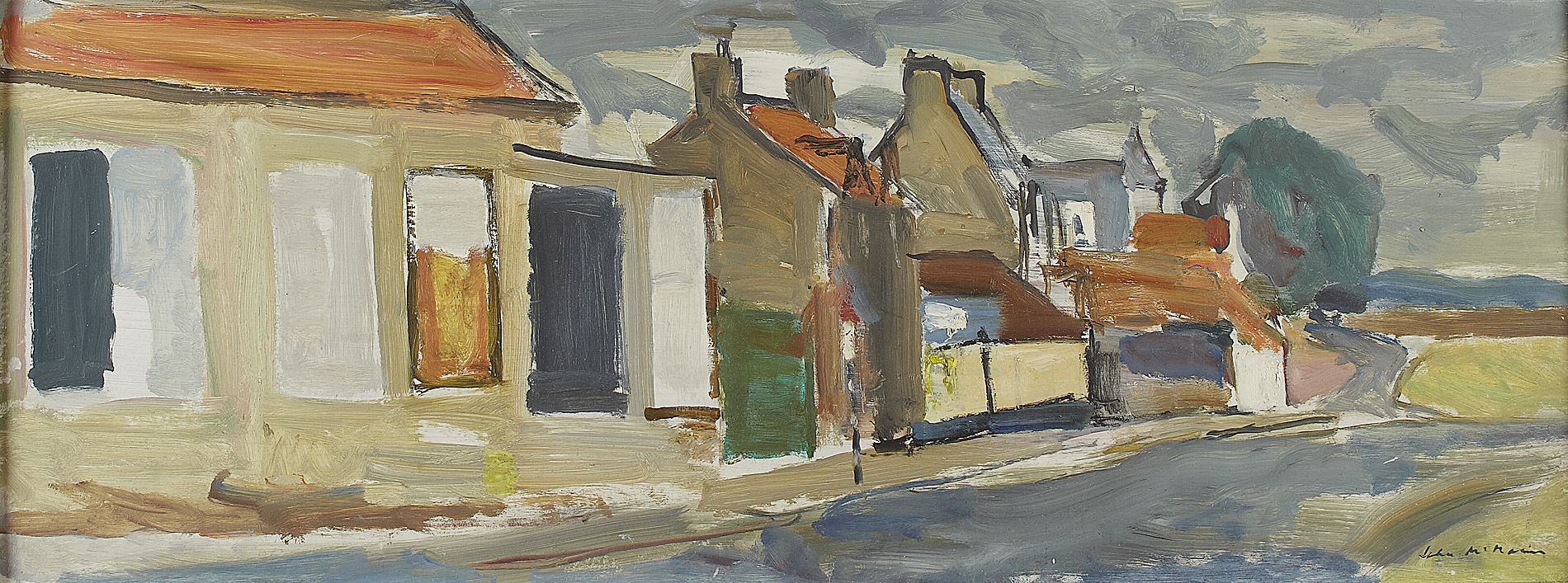 Born in the Scottish Borders in 1910, John McNairn enjoyed a long and fruitful artistic career. He began his training at Edinburgh College of Art in 1927 (a particularly productive and exciting time in the College’s history), before continuing his studies in Paris at the Académie Scandinave under Othon Friesz. While the most talented students of the College had traditionally undertaken further study abroad, his choice of the Académie was somewhat unusual, yet allowed him to pursue his interest in Post-Impressionism and a direct and truthful style of painting. Whilst in