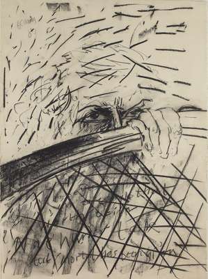 SELF PORTRAIT LOOKING OVER BACK OF CHAIR