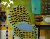 INTERIOR WITH FISH, LILIES AND BLUE WICKER CHAIR