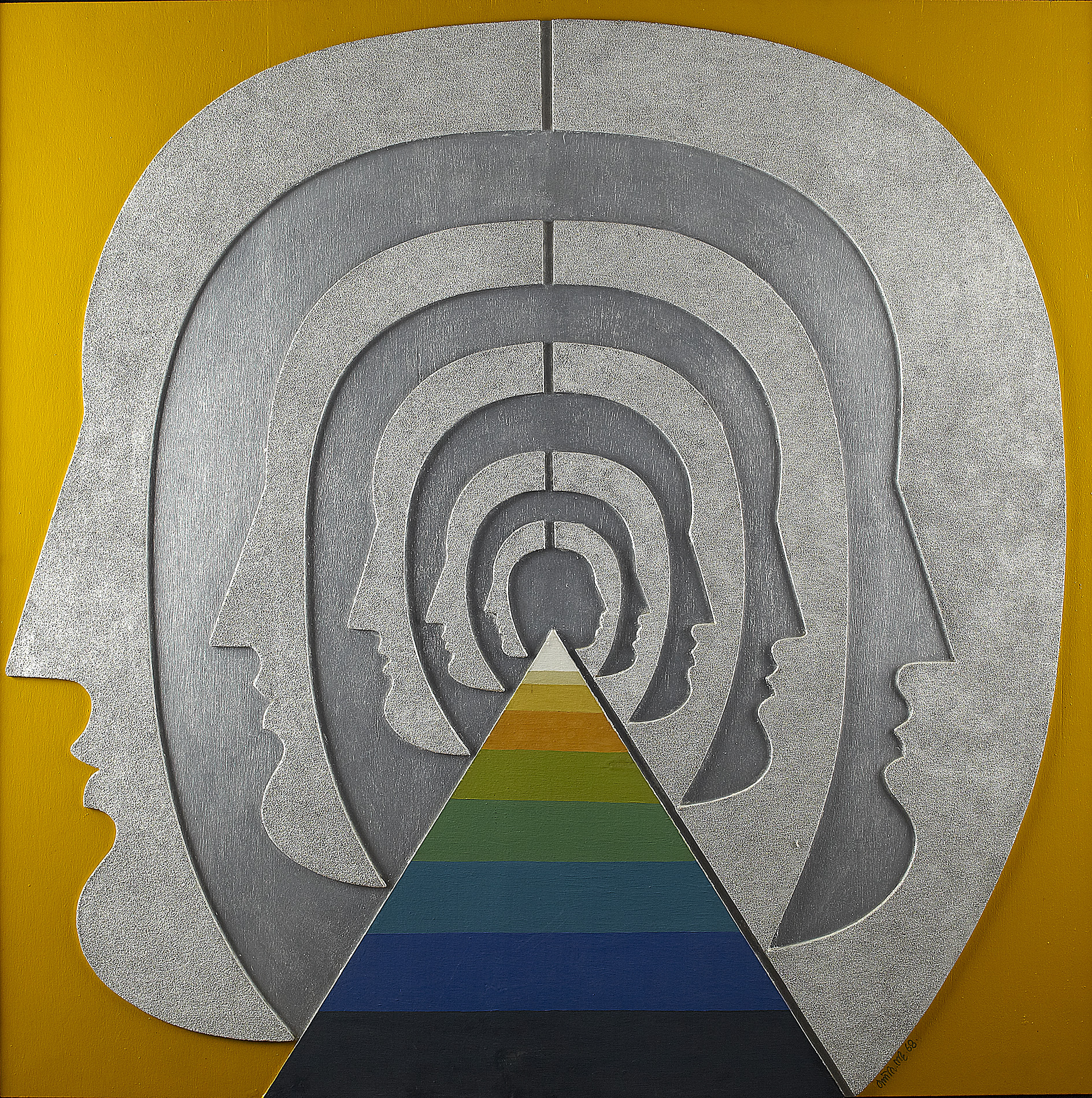 Signed and dated '68, oil and wood relief