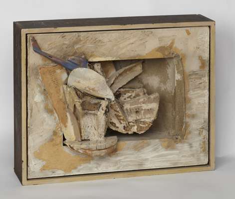 Signed, inscribed and dated 1986 verso, wooden construction