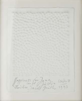 Signed, inscribed and dated 'Happiness for Jane & Justin 1990', nail pressed paper