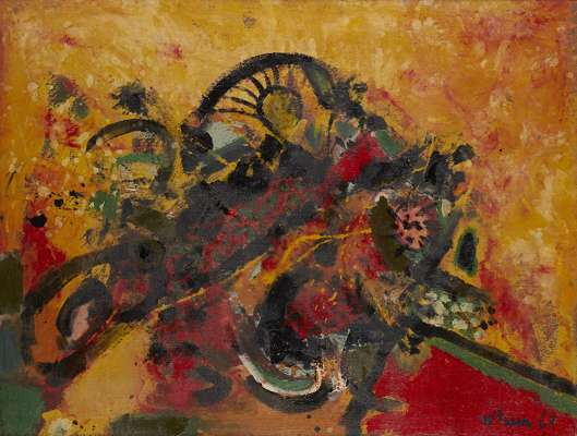 Signed and dated 1961, inscribed on stretcher verso, oil on canvas