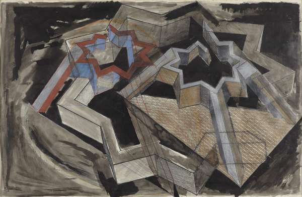 Signed and dated 1982 lower right, ink and gouache