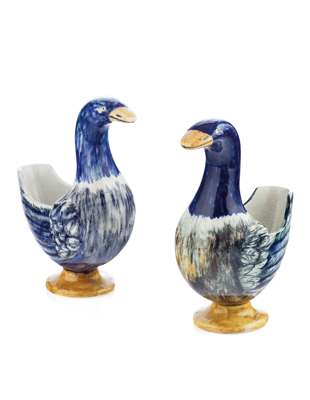 PAIR OF SMALL GOOSE FLOWER HOLDERS, EARLY 20TH CENTURY