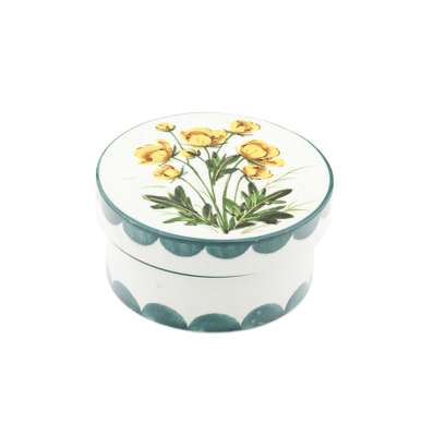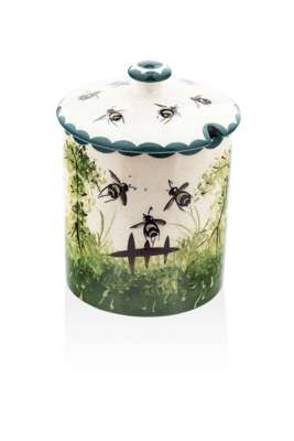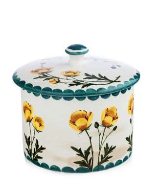 SMALL 'ORANGES' PRESERVE JAR, COVER & STAND, EARLY 20TH CENTURY