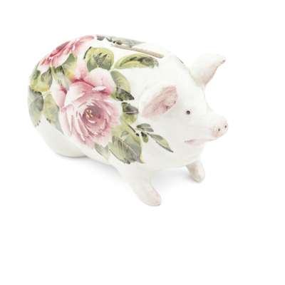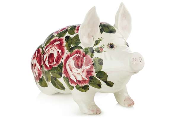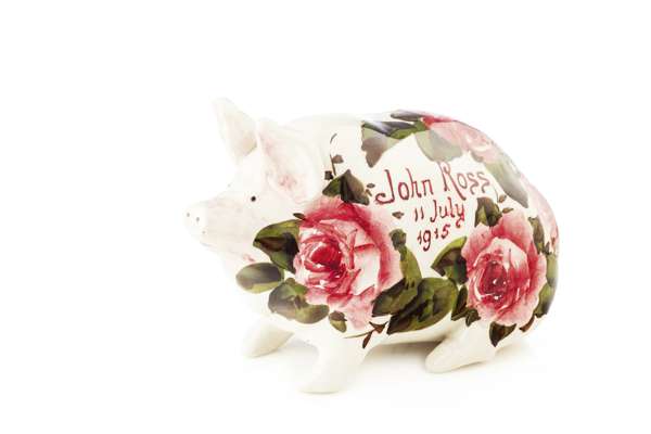 RARE 'CABBAGE ROSES' PIG MONEYBOX, DATED 1915