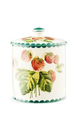 LARGE 'STRAWBERRIES' PRESERVE JAR & COVER, CIRCA 1900