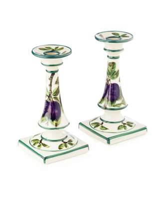 PAIR OF PURPLE PLUMS' SQUARE BASED CANDLESTICKS, CIRCA 1900