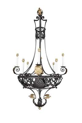 WROUGHT IRON CHANDELIER, CIRCA 1920