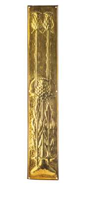 each of rectangular form, repoussé decorated with stylised elongated thistle designs (4)