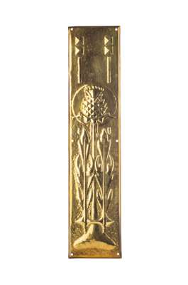 SUITE OF FOUR BRASS DOOR PLATES, CIRCA 1900