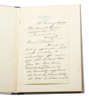 pub. George Stewart & Co. Ltd. Edinburgh 1934; together with a signed letter from Alexander Ritchie of Shuna Cottage, Isle of Iona to Miss Augusta Lamont of Taigh a' chlachain, Inverchaolain, Argyll