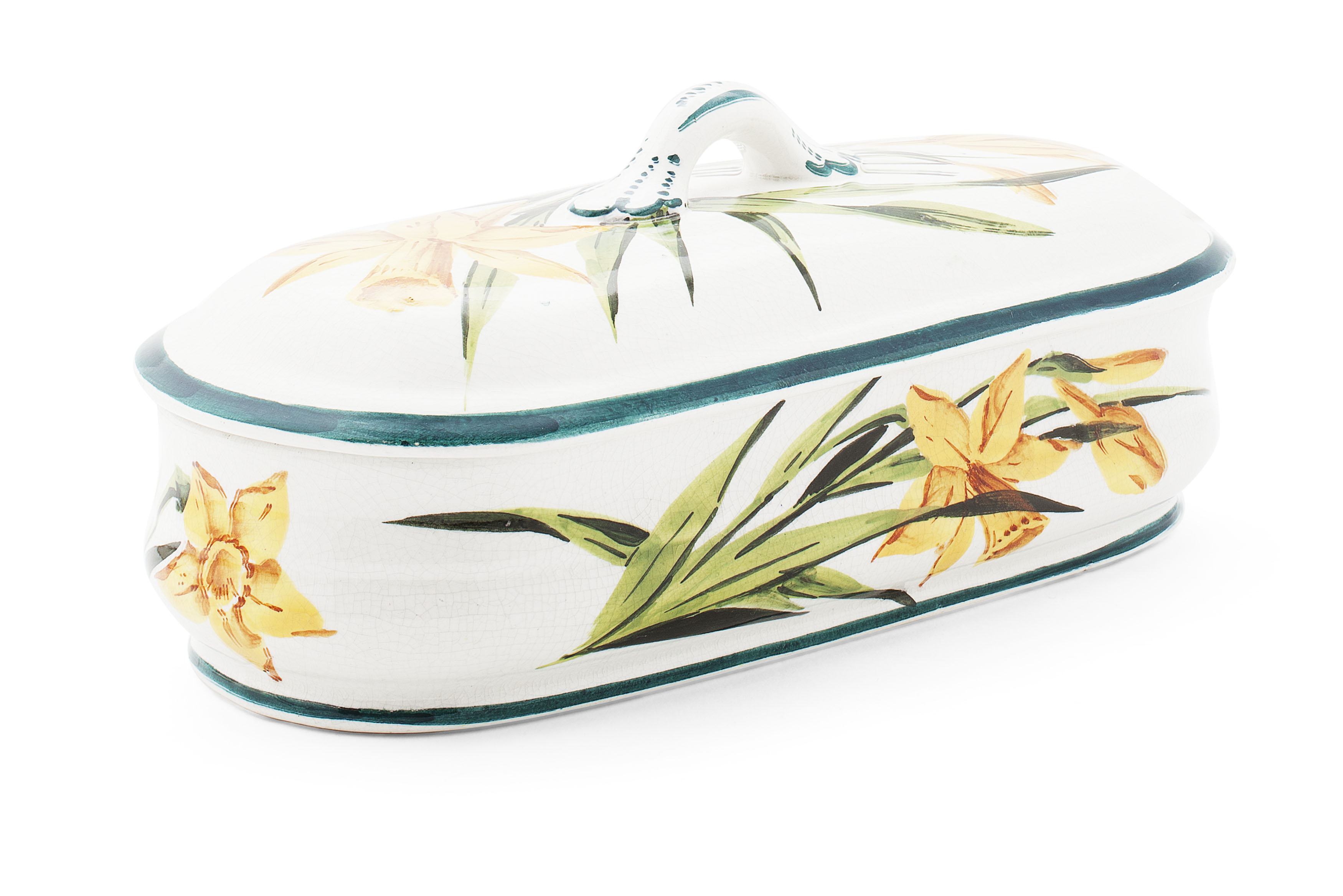 'DAFFODILS' TOOTHBRUSH DISH, CIRCA 1900