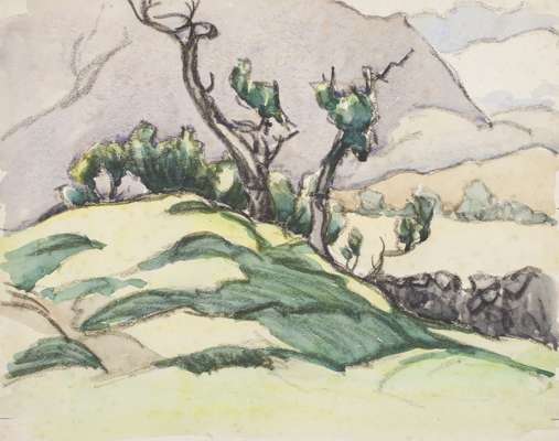 charcoal and watercolour, signed lower right E.A. TAYLOR, 29cm x 23cm; and a GROUP OF FIVE LANDSCAPE SKETCHES by the same hand, charcoal and watercolour, unsigned (5)