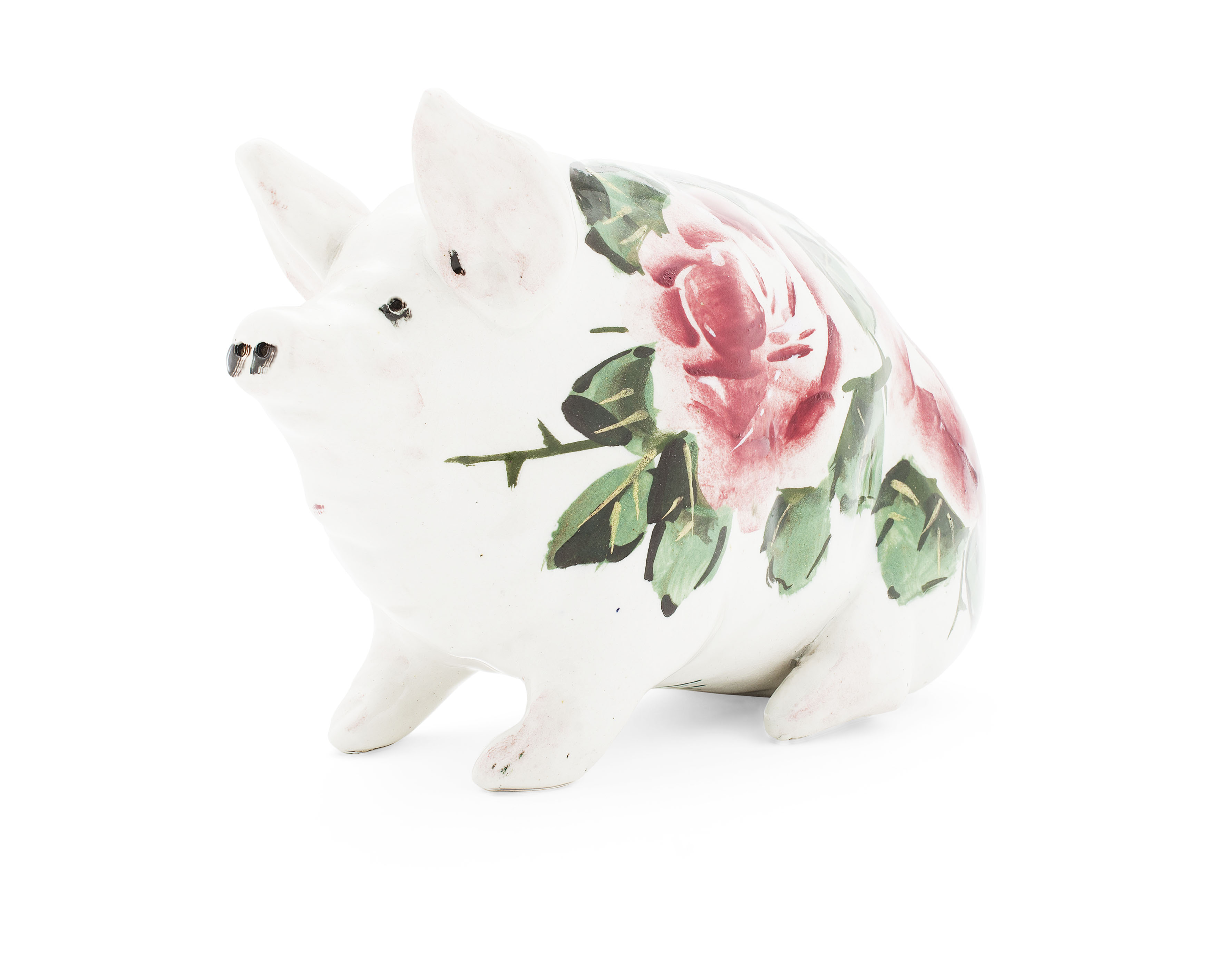 SMALL 'CABBAGE ROSES' PIG MONEYBOX FIGURE, EARLY 20TH CENTURY