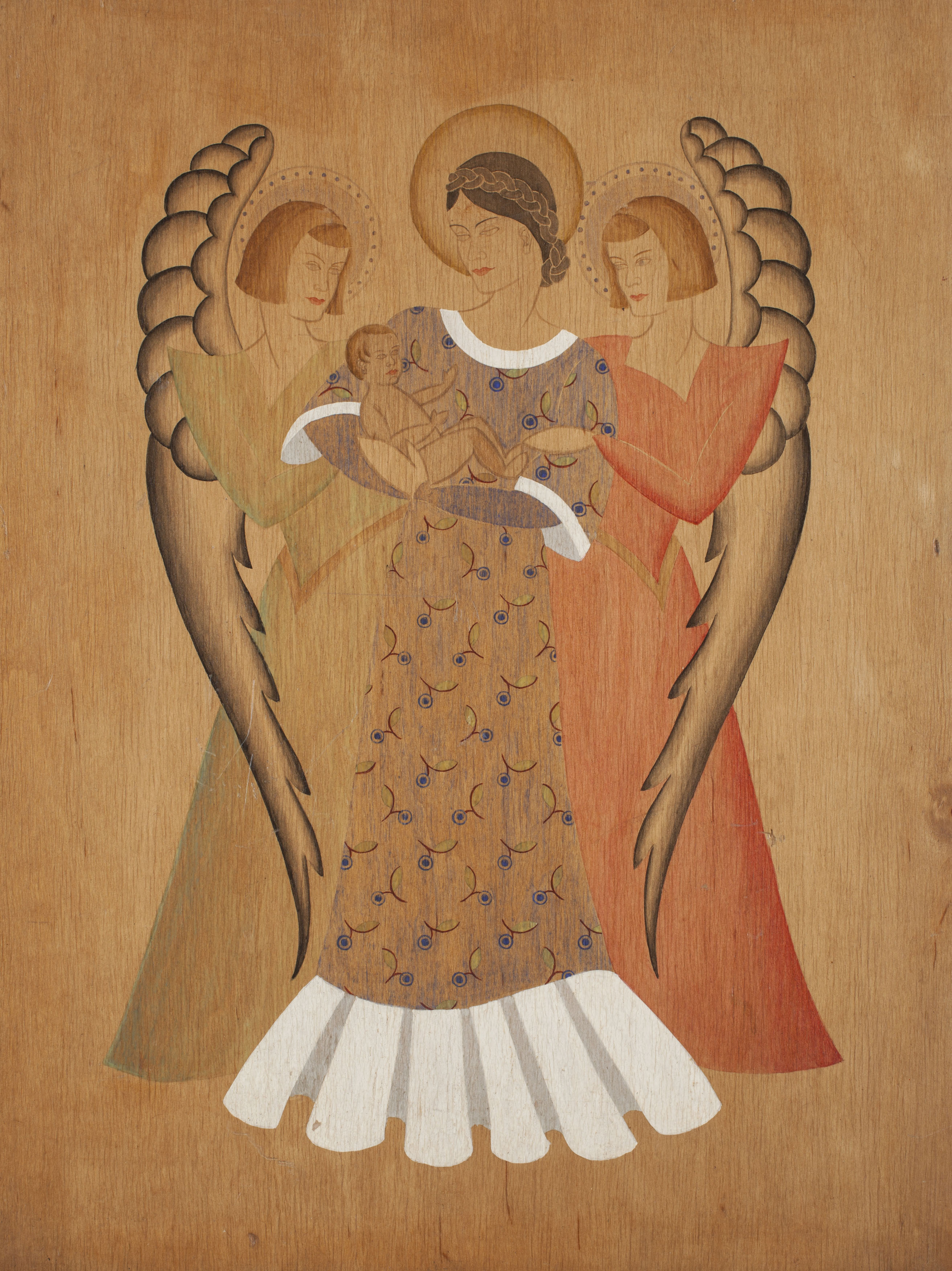 watercolour and oil on wood panel
