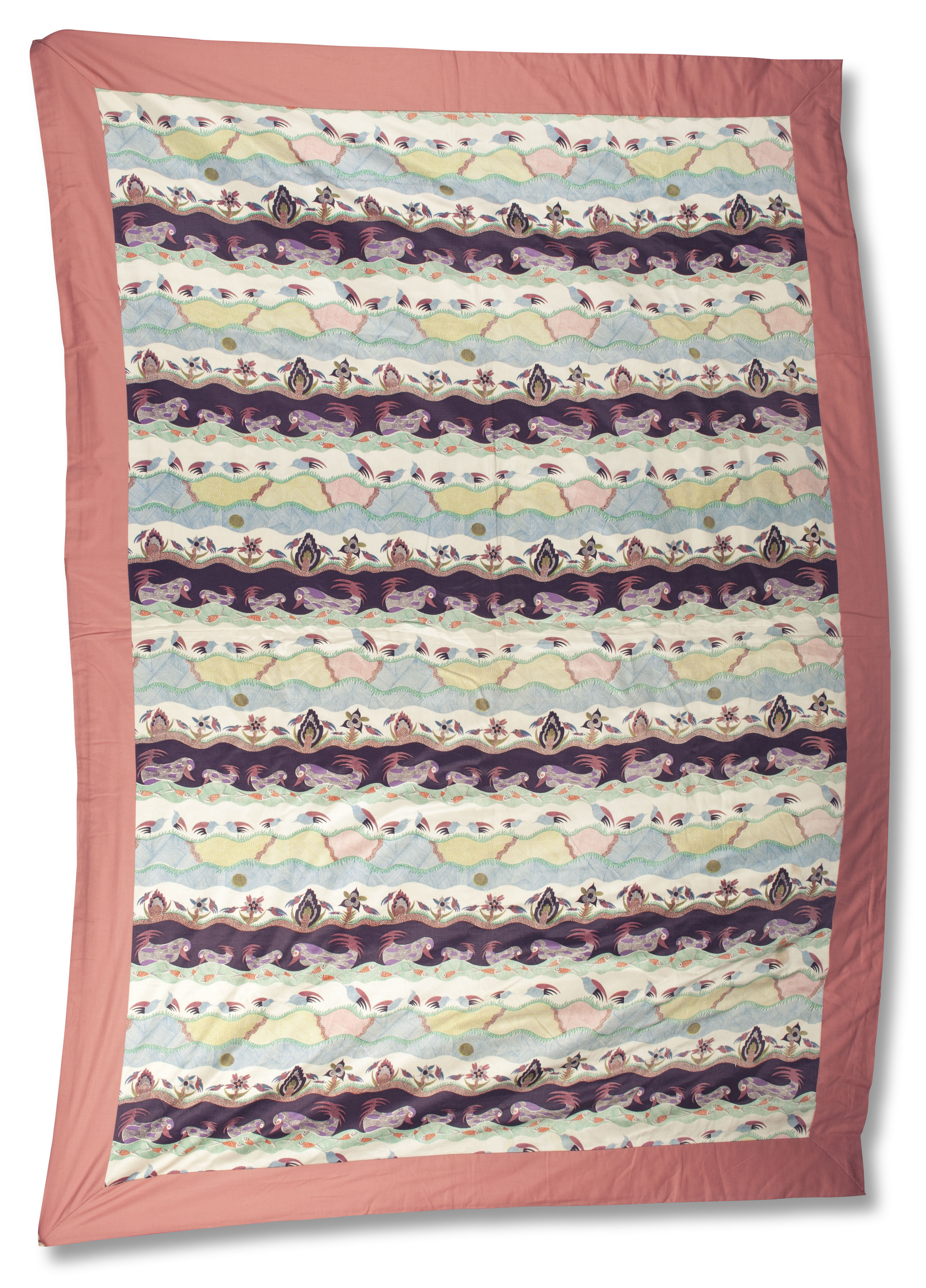 Note: Edinburgh Weavers was founded in 1928 by the textile manufacturer James Morton (1867-1943) as an experimental design and marketing unit of Morton Sundour Fabrics. Originally based in Edinburgh, the firm merged with Morton Sundour Fabrics' weaving factory in Carlisle in 1931. They achieved success in the UK and US under the enlightened directorship of Alastair Morton (1910-63), who commissioned freelance designers and artists to produce work for interpretation as printed and woven fabrics. Following Alastair Morton's death, Edinburgh Weavers was taken over by Courtaulds in 1963.