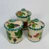 with associated cover, 12.5cm high; 'RASPBERRIES' PRESERVE JAR & COVER, 13cm high; and 'APPLES' PRESERVE JAR & COVER, 13cm high, each with painted or impressed marks (3)