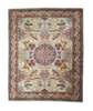 the machine woven ivory field with central red octagonal Celtic knotwork medallion surrounded by huntsmen with dogs, deer, boar and horses within red and polychrome strapwork border
