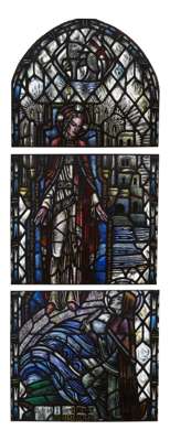 Note; Gordon McWhirter Webster’s father Alfred A. Webster, was a Stained Glass, artist between 1884 and 1915. On his death his widow continued to operate her dead husband's firm. In 1929 it finally passed under the direct management of Alf’s son Gordon who had been an infant at the time of his father's death. Mrs Webster had managed to keep the studio solvent by placing the practical management of the glass shop in the hands of the firm's former apprentice and assistant, Douglas Hamilton. Hamilton trained Gordon, but like him he was for a number of years strongly influenced by his late father’s work. His fine early windows might very well be mistaken for that of his father's. However, by the mid-1930s he had discovered his own voice and some of his work from this period is very fine indeed.