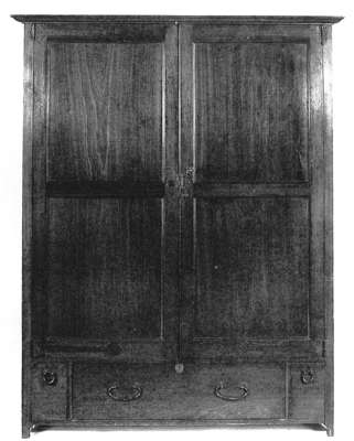 Note: Billcliffe notes a similar example in cypress in his catalogue raisonné; left by William Davidson at his death but possibly previously owned by Mackintosh along with other furniture from his house at 78 Southpark Avenue. This example is now thought to be untraced (see illustration). The current lot is almost identical in form with strapwork hinges and other fittings and is the only other known example. The door handle has been replaced, presumably in the 1920s.
