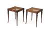 each with square caned seats above a plain frieze with traces of painted florets, raised on ring turned legs with outwardly splayed feet (2)