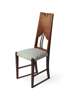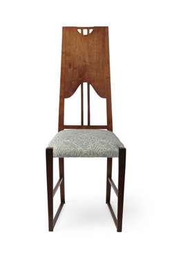 the pierced solid back with two slender splats raised above an upholstered seat on square supports linked by stretchers