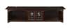 the projecting cornice above two open shelves, enclosing a pair of doors, each inset with stained and leaded glass panels depicting Glasgow roses