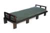Note: The original design for this day bed survives in the Glasgow University Collection bearing the title 'Couch in Ladies Common Room'. The wood is to be 'in birch stained dark and waxed' and the upholstery of 'mouse grey corduroy'. The design shows a fixed upholstered back, but is annotated by Fra Newbery with the comments that ' with a seat this width a stuffed or even padded back is not necessary at all / cushions can be hung along the wall at the back (from a little moulding) and movable cushions as many as are needed can be placed on the seat'.