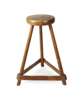the circular seat raised above three turned legs linked by stretchers