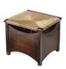 the square rushed seat above square section supports enclosing panelled sides with concave cut out decoration