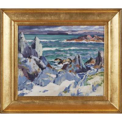F.C.B. Cadell had a long-standing love affair with the west-coast isle of Iona and spent many a long Scottish summer painting there alongside fellow Scottish Colourist S.J. Peploe. Together they traversed and transmuted vision into paint across every spot and angle of this artist’s haven. A unique west coast wildness prevails, with a sense of open space and gorgeous, sparkling light, truly an artist’s paradise.