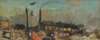 Paintings, such as the offered, 'Tenements at Evening', illustrates Eardley's dedication to capturing what remained of the tenements and backcourts of Glasgow, which were fast-disappearing at the time. She felt that these were representative of Glasgow and recognised the sense of community which had once thrived in these areas.