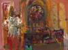 At the end of the 1950s, Philipson began turning his attention to the technical and decorative possibilities of the cathedral interior. He was particularly inspired by his travels abroad: from Venice where the light of the lagoon pours through the ornate rose windows, to the cheerful candle-lit altars of Mexico, and the towering grandeur of France's gothic architecture. They were a textural delight for his painter's brush and he revelled in describing the glimmering mosaics of coloured glass, the richly carved stonework and the gilded woodwork.
