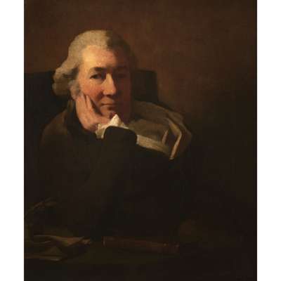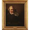 The creation of the version offered here may have been occasioned by the sitter's death in 1797. The extensive use of bitumen suggest that it was painted c.1800 when the artist had developed a new and darker style of painting. Raeburn may have used the original version as his model. This version is just over half the size of the primary version and the reduction in scale has caused some essential changes to the composition: the sitter's left arm is lowered out of sight and the book now appears on the table. Studio assistants working for Raeburn at that early date are not known, and although the involvement of assistants in Raeburn's practice is poorly understood, it seems always to have been limited. In the primary version the leading eye of the portrait has a cast and there is also disparity between the two sides of the sitter's face, created by shadow.